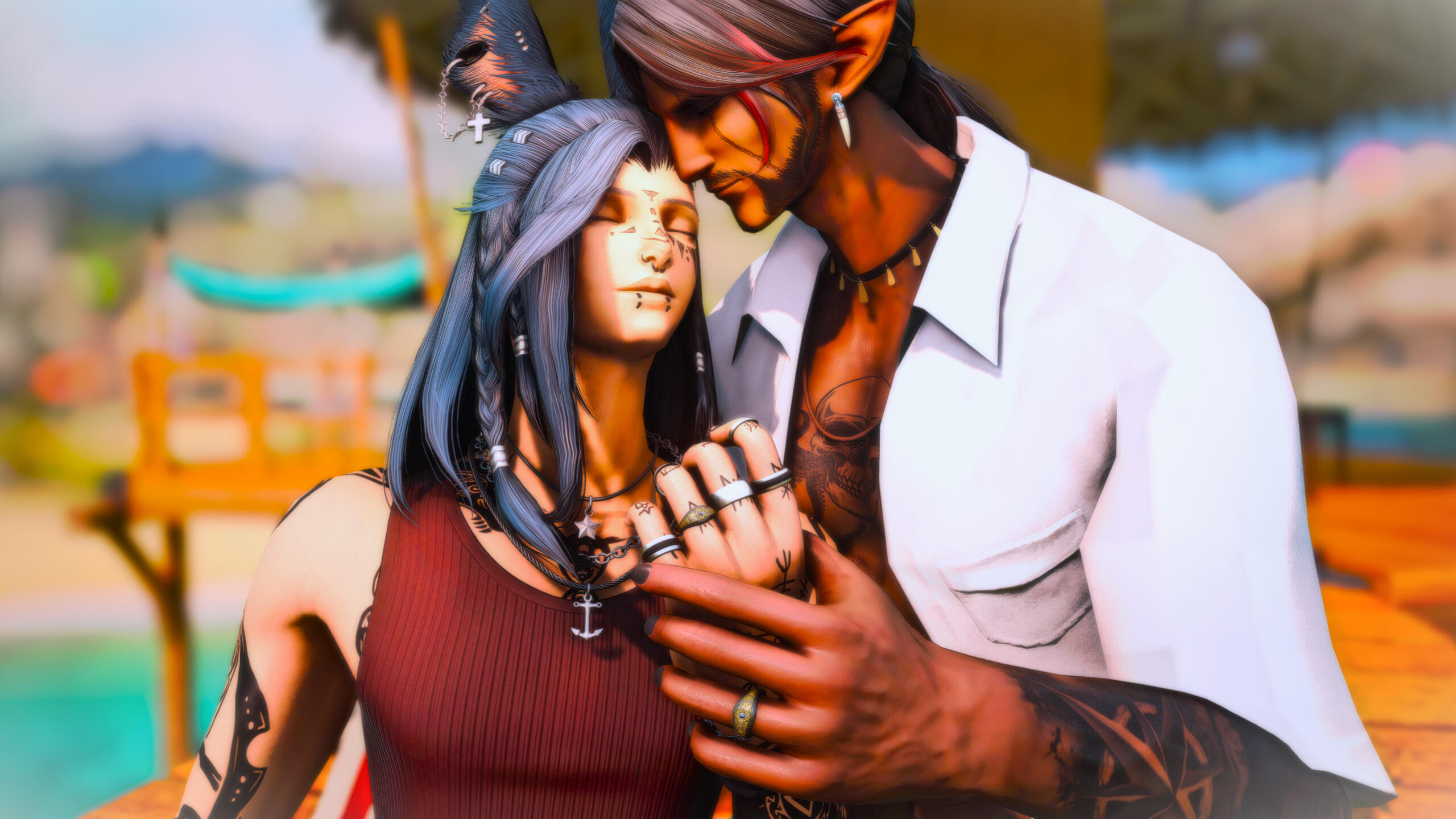 The Final Days. When the star as a whole came under threat, when darkness and despair won over the minds of many, and turned them into monstrous beasts. Though much of this was centered in Ilsabard, pockets of activity emerged elsewhere.It emerged around him. Turned friends into terrors. He bore witness to it all, forced to take down comrades. To take down their children.He refuses to talk about it.His relationship soon came to an end after, further threatening to break the man down. Yet, still he stood. He merely went back to his old ways again, fighting and fucking and drinking.Yet even in this, there was still hope. He met someone new, and things kicked off quickly. A sordid romance quickly bloomed into what the pirate thought was true love. He had found his soulmate at last. He was never happier.It was only made better when a fellow slave from his childhood entered the picture. A cherish friend. Together, the three of them became nigh inseparable.Soon, a child was added to the family. The daughter of his girlfriend, they had rescued her from her father, a Garlean scientist.They were soon wed, he and his beloved, and the four because a family. Something that the Elezen had never had before. Something he thought he needed.Sidhion hated it. This wasn't the life for them.