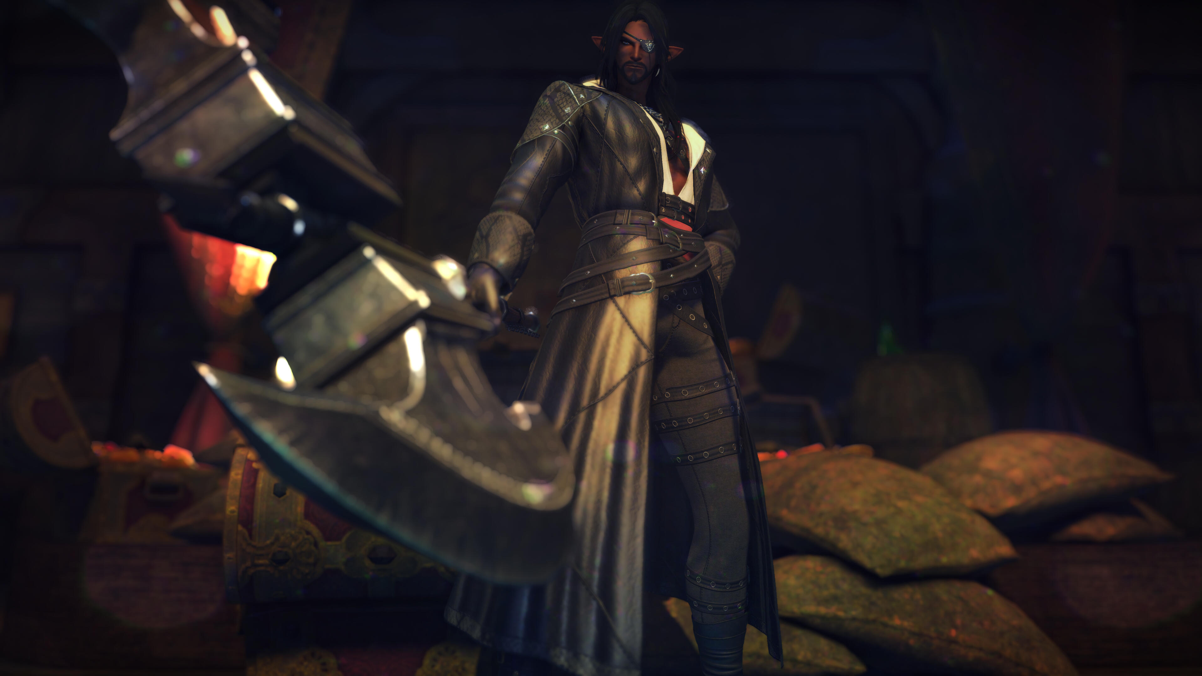 Into a new bondage he went, swearing fealty to a new captain, a new crew. Again he fought, again he rose. Through blood, sweat, tears, and manipulation did he rise to Captain himself, thanks in no small part to a mutiny he started himself. The former captain was keelhauled, gruesomely murdered for no reason more than to serve the Elezen's growing ambitions.He found himself with a loyal crew, and a ship he named Saoirse — 'Freedom' in an old, lost tongue. His first mate became his lover, a female Rogaydyn name Moengeim. She was ever as vicious as he himself could be.As time went on, the man now known as The Tempest rose to infamy on the seas. His rage was well known to all save himself, periods of blackout his only knowledge of such horrid atrocities caused by his own hand.Long did the reaver ship rule over the seas, ravaging ships, taking their stock and loot, and destroying them just to see the crews drown. Beachside villages saw their homes raided, their women raped, and children and men killed. All in sport for Tristan's hellish alter-ego. A personality shaped by the horrors he endured.